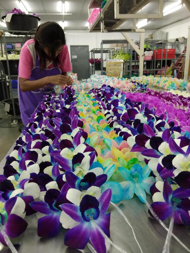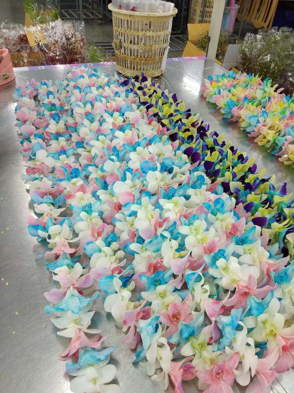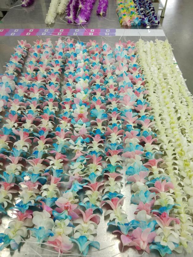As Florists, Floral Designers and Event Planners discovered that we would create whatever they wanted, the types and styles of leis we produced became almost infinite. Other Thai orchid processors/exporters only produced a few styles and a few colors. We began experimenting with colors, styles and different flower varieties that other producers would not consider.