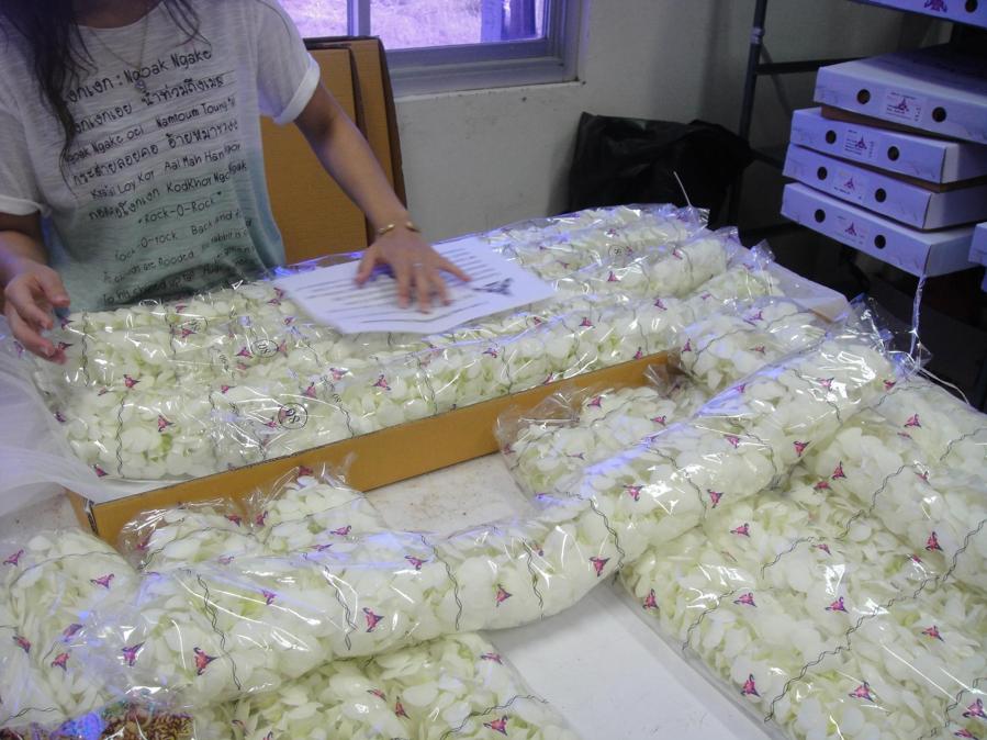 Early in the development of our business, we were asked to produce leis. Since we controled both the sales operation in the US, as well as the productin and export in Thailand, we did not have minimum order requirements. This allowed us the flexbility to produce unique products, and provide customize assortments of products.