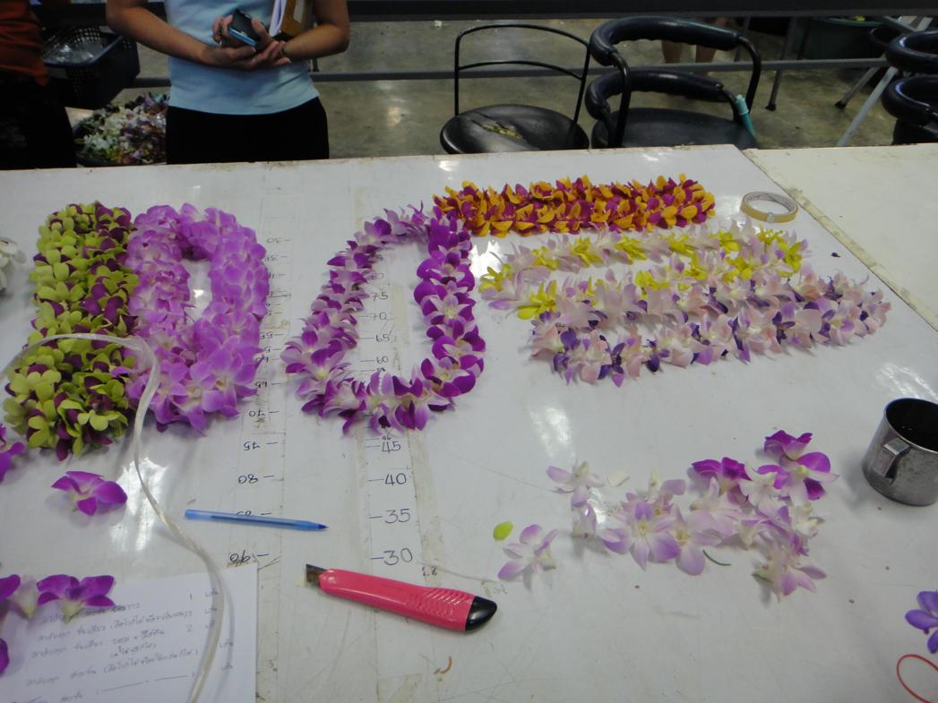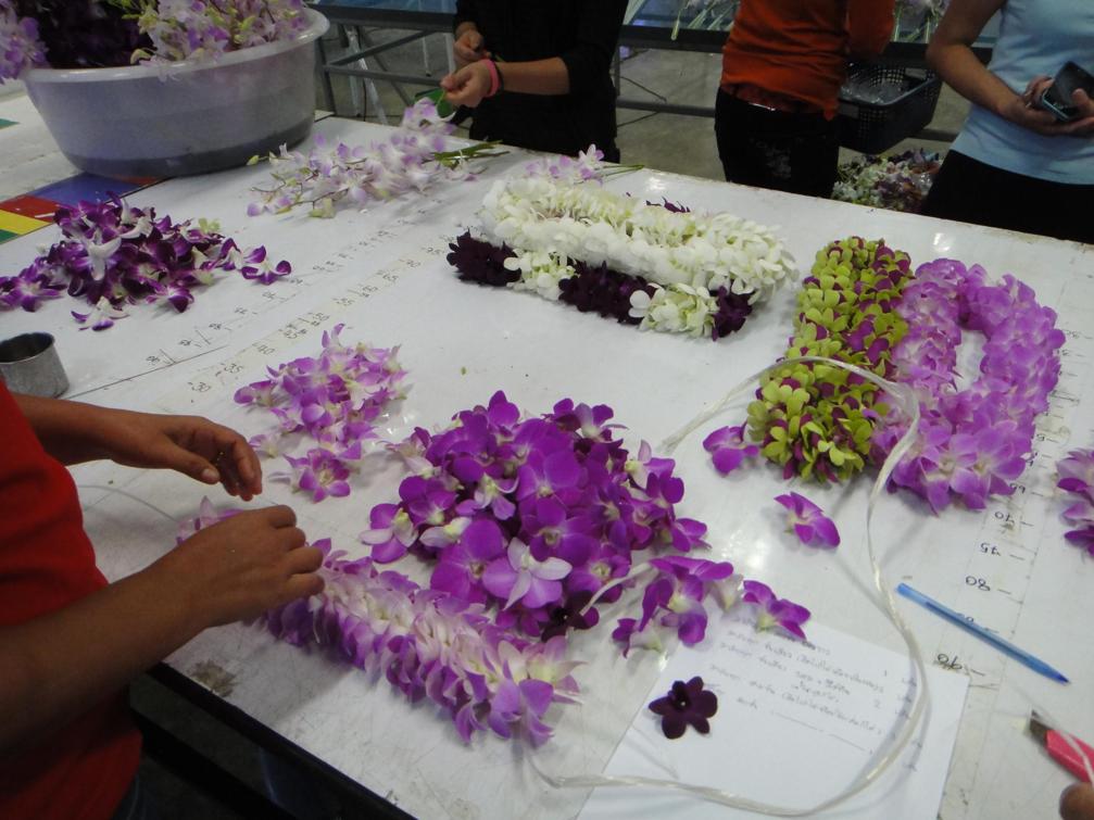 Producing leis and garlands is essentially very simple: just stringing single blooms onto a string. But, there are a number of technical issues that are not apparent to the causal observer/user.