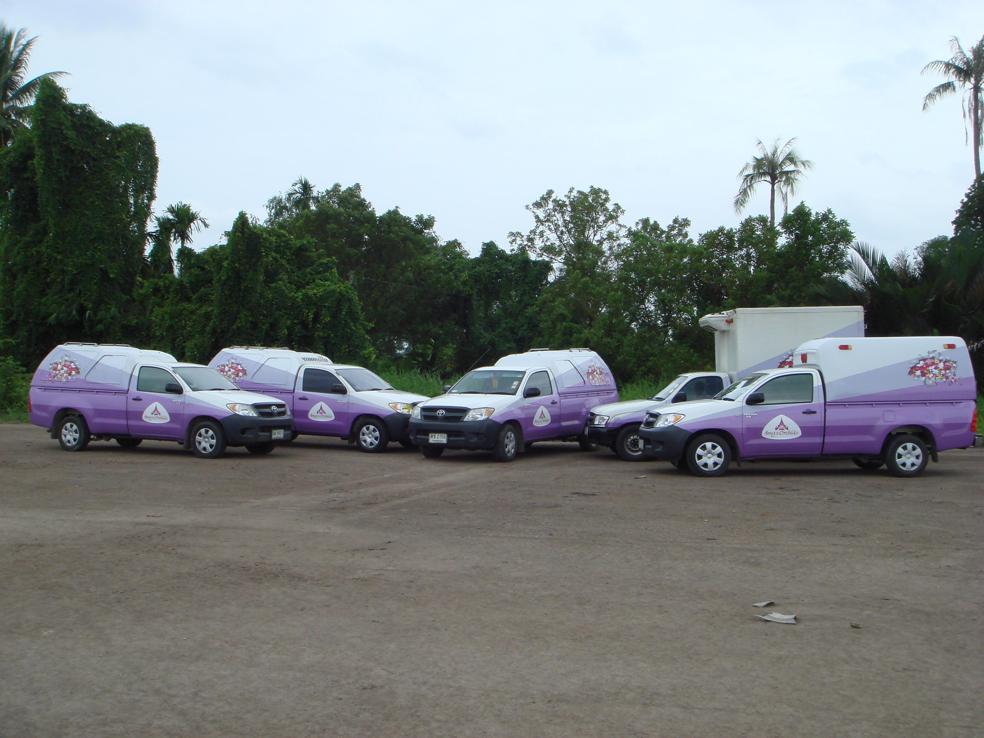 Our building was designed to be fully air conditioned – something unusual for a “factory” in Thailand. Every other orchid processing facility was either open air, or un-air conditioned. But, we went much further. We installed air conditioners in the rear of the trucks we sent to pick up flowers. NOBODY else did that. Our trucks had our company logo, and where painted in our logo colors. Soon, other orchid exporters copied that.